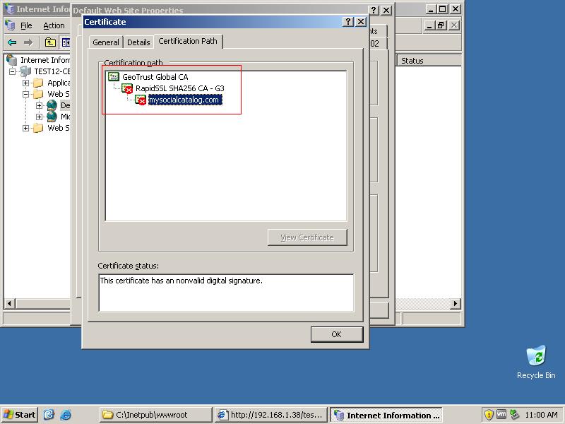 เนื่องด้วย algorithms ในการเข้ารหัสแบบ SHA-1 ได้ถูกยกเลิกการใช้งานไปแล้ว โดยที่ browser ทั้งหมด จะยกเลิกความน่าเชื่อถือในการเข้ารหัสโดยใช้ algorithms SHA-1 ดังนั้นในปัจจุบัน SSL Certificate ทั้งหมดจะถูกเปลี่ยนไปเป็นการเข้ารหัสแบบ SHA-2 เพื่อความปลอดภัยที่มากขึ้น แต่ปัญหาของ IIS6 คือไม่รองรับการเข้ารหัสแบบ SHA-2 จึงทำให้เมื่อติดตั้ง SSL Certificate แบบ SHA-2 แล้วนั้น จะไม่สามารถเรียกใช้ Certificate ได้ โดยสังเกตุได้จากตัว Certificate จะมีรูปกากบาทสีแดง เมื่อติดตั้งไปแล้ว ซึ่งวิธีการแก้ไขมีขั้นตอนดังต่อไปนี้