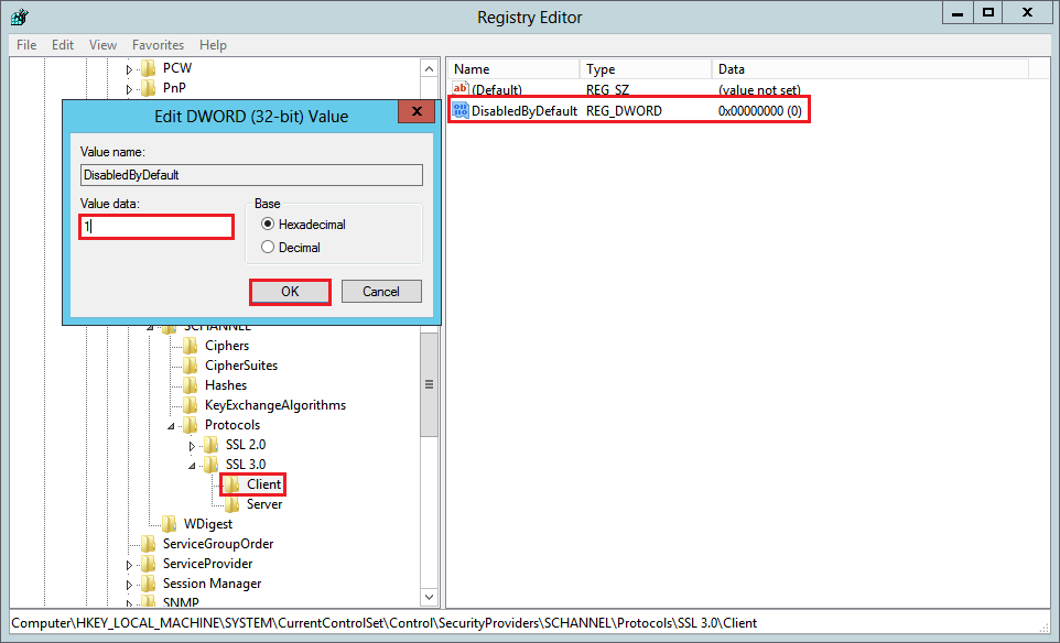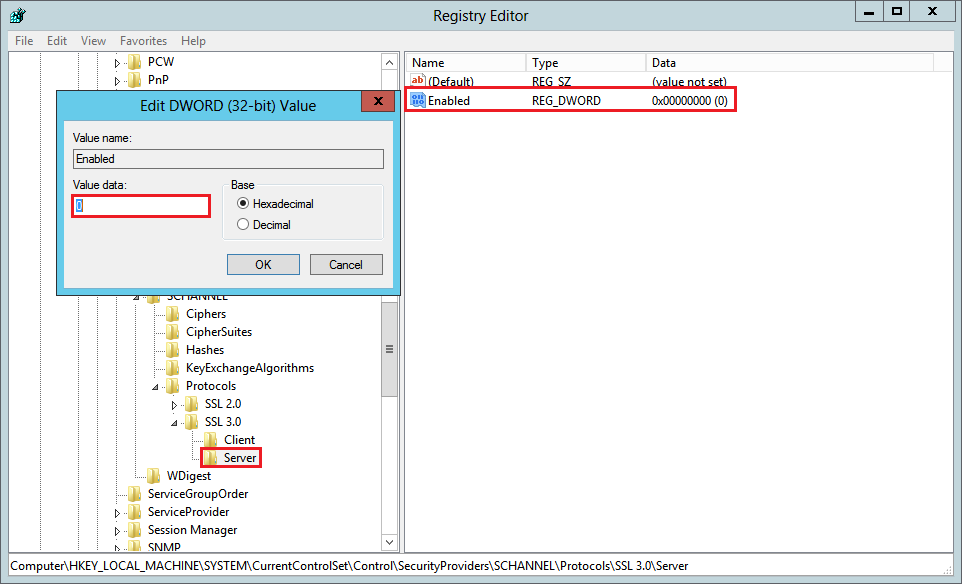 - กรณีต้องการปิด SSL 3.0 ให้ใส่ค่า 0