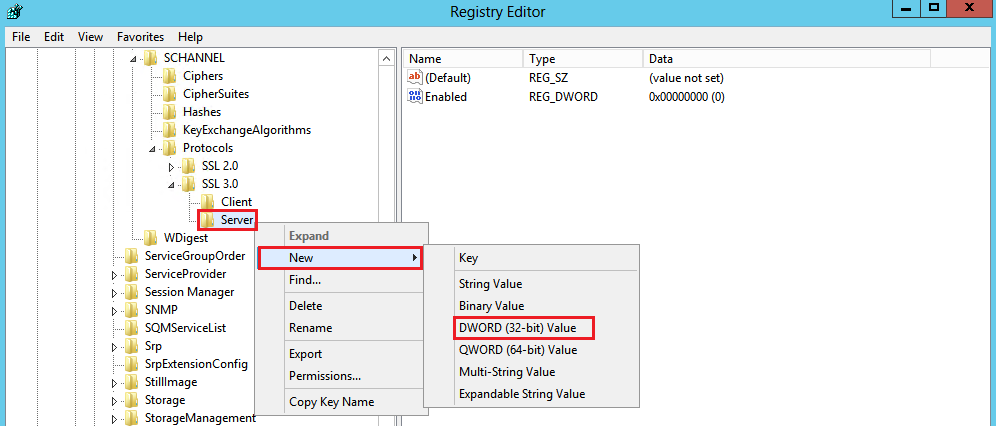 4. ใช้ชื่อว่า SSL 3.0 หรือ TLS 1.0 หรือ TLS 1.1 หรือ TLS 1.2 ขึ้นอยู่กับต้องการแก้ไข Protocol อะไรอยู่ (กรณีมี Protocol ที่ต้องการแก้ไขอยู่แล้วอยู่บนระบบ ไม่ต้องทำการสร้างใหม่ ให้แก้ไขจากค่าเดิมได้เลย)