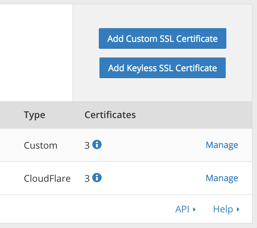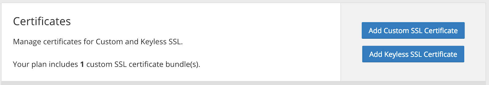 2. Go to the 'Certificates' section and choose "Upload Custom SSL".