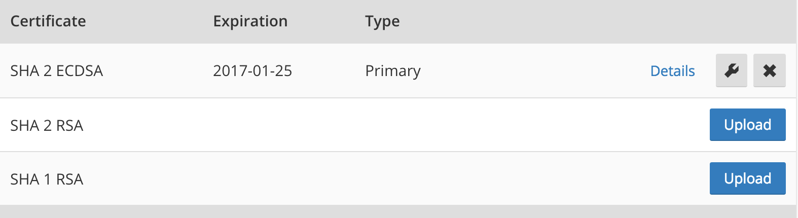 Similarly, you're able to edit an existing certificate in place by clicking the wrench icon or removing a certificate in a pack by clicking the X icon.
