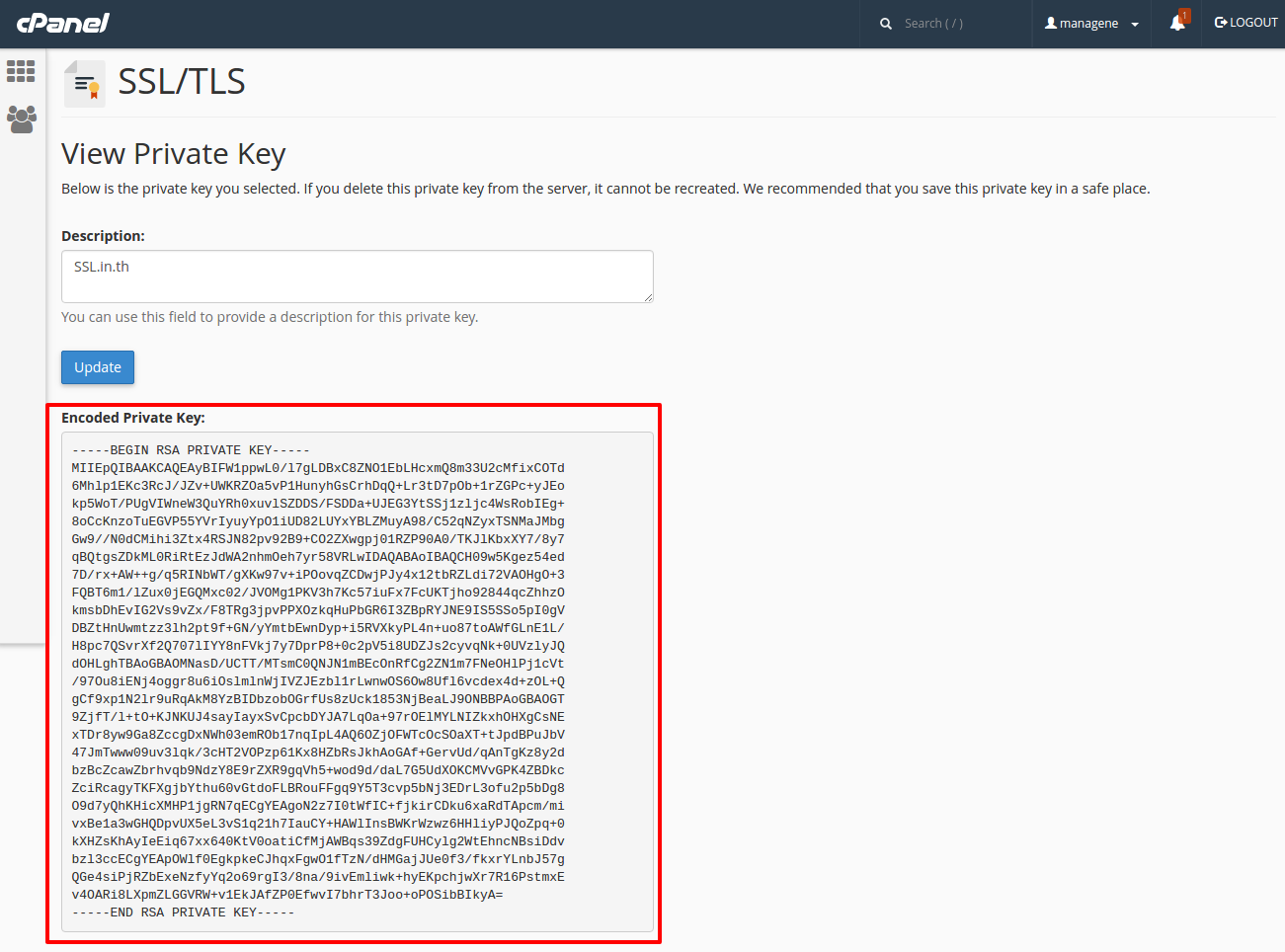 8. ในส่วน Private Key (KEY) ให้ทำการนำ Key ที่ได้ทำคัดลอกไว้ในข้อ 4 มาใส่ลงไปในช่องว่าง