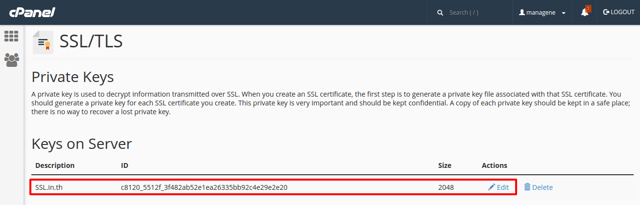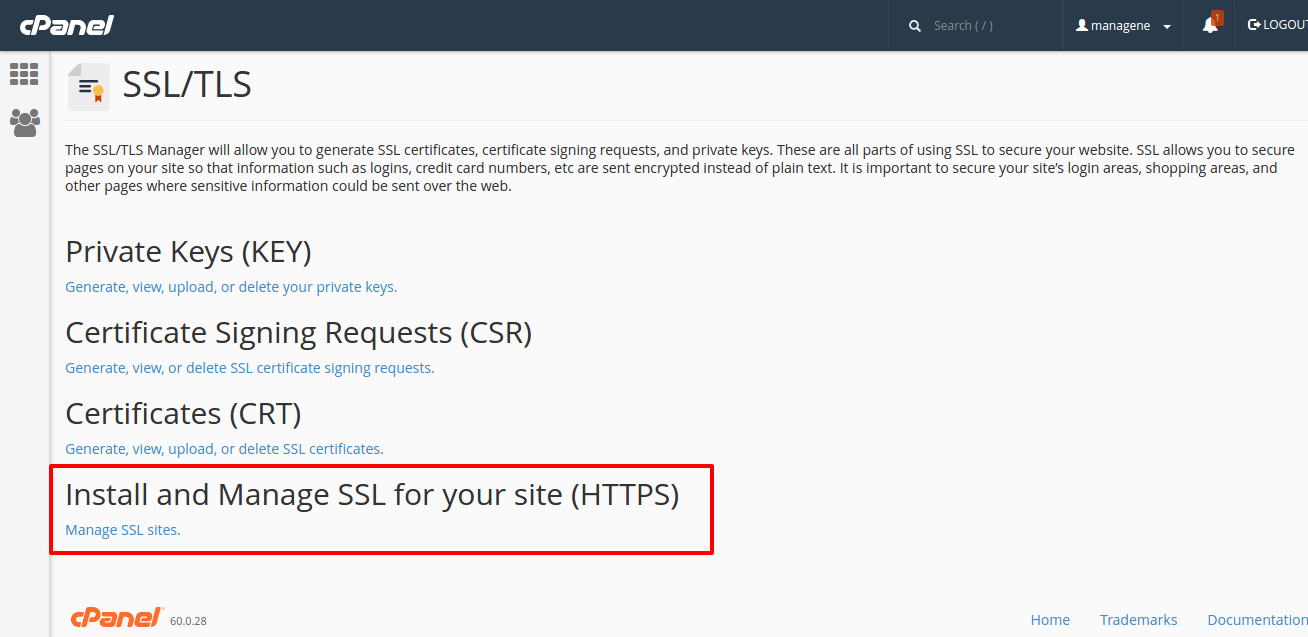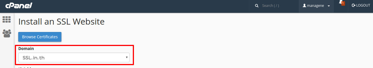 5. ไปที่ Manage SSL sites เพื่อเข้าสู่ขั้นตอนติดตั้ง