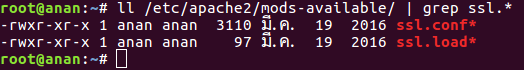 จะเห็นว่า มีไฟล์ ssl.conf และ ssl.load เรียกใช้งานในโฟลเดอร์ ดังกล่าว