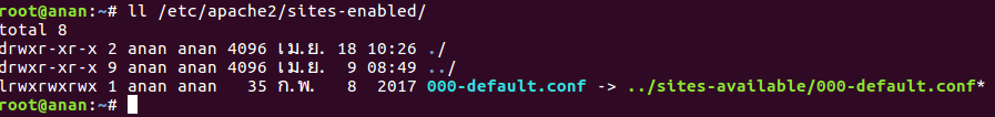 3.2 ตรวจสอบเข้าไปยังโฟลเดอร์ Sites-enabled ว่าไฟล์สำหรับการตั้งค่า SSL certificate ถูกเรียกใช้งานแล้วหรือยัง