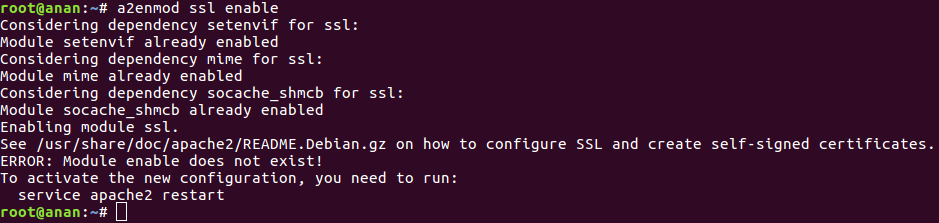 เมื่อรันคำสั่งแล้ว จะได้ผลตามรูป จากนั้นให้ทำการ restart service apache 1 ครั้ง