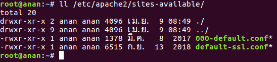 โดยตามรูป จะเห็นได้ว่ามีไฟล์ default-ssl.conf ซึ่งเอาไว้สำหรับตั้งค่า SSL certificate แล้ว