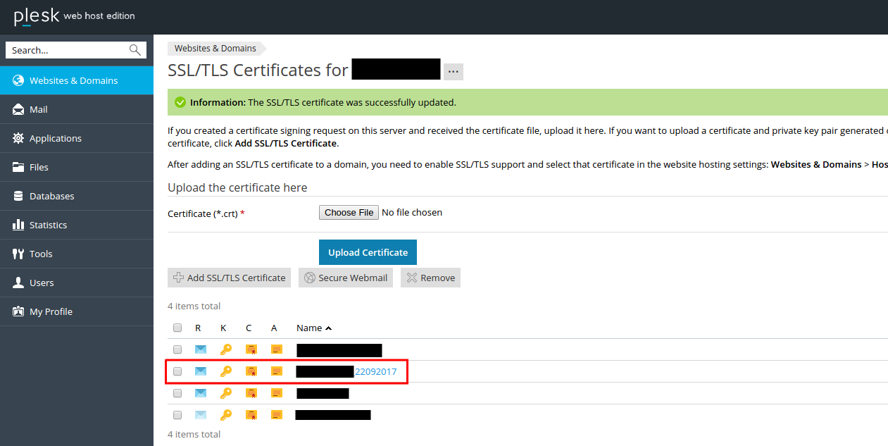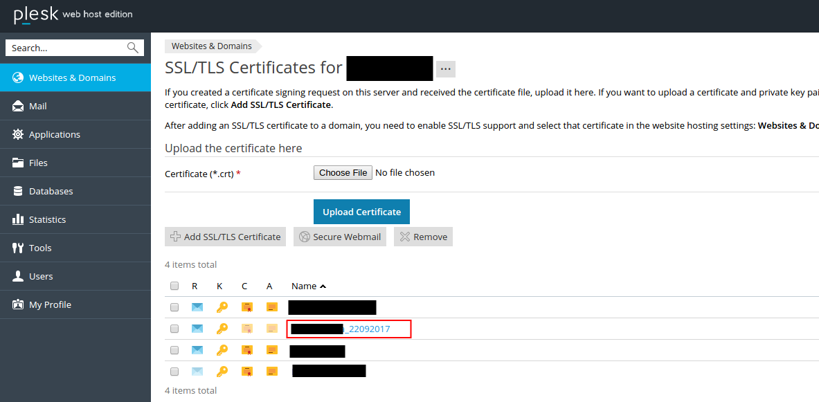 1.เมื่อผู้ใช้งาน Login เข้ามาในระบบแล้ว ให้เข้าสู่เมนู Websites & Domains > Domain ที่ต้องการ > ไปที่เมนู SSL/TLS Certificates