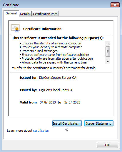(ในกรณีมี Intermediate CA มากกว่า 1 เช่น Brand Comodo ให้ติดตั้งด้วยวิธีเดียวกันสำหรับไฟล์ที่ 2 ได้เลย)