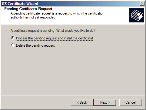 6. เลือก Process the pending request and install the certificate จากนั้นกด Next