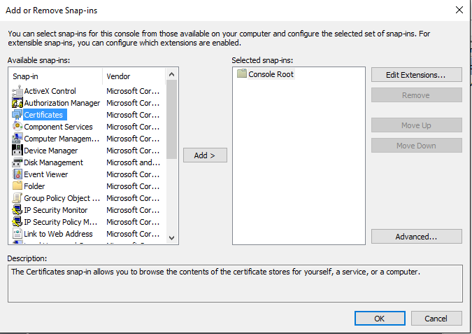 4. เลือก certificate และกด Add