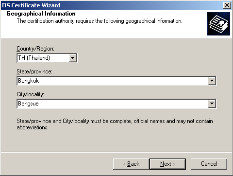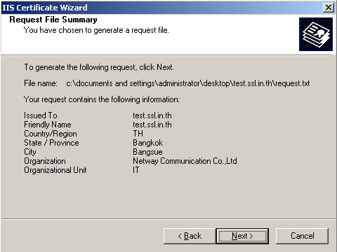 11. ตรวจสอบความถูกต้องของข้อมูลอีกครั้งหนึ่ง เมื่อตรวจสอบว่าถูกแล้วให้ทำการกด Next แล้วก็กด Finish ก็เสร็จขั้นตอนการ Generate CSR