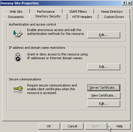 ในการสร้าง CSR ใหม่สำหรับโดเมนที่ติดตั้ง SSL ไว้อยู่แล้วบนระบบ IIS 6 จะต้องทำการลบ SSL Certificate ที่ติดตั้งอยู่ก่อน ถึงจะสามารถสร้าง CSR ใหม่ได้ แต่จะส่งผลให้ SSL ใช้งานไม่ได้ทันที ดังนั้นวิธีการแก้ไขคือ จะต้องสร้าง Dummy Site ขึ้นมาเพื่อใช้สำหรับสร้าง CSR แทนเว็บไซต์ที่ใช้งานอยู่จริง โดยสามารถดำเนินการได้ดังนี้