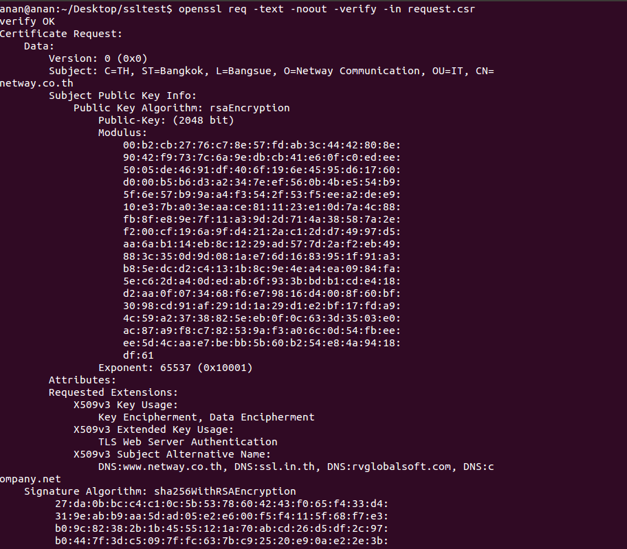 3. ตรวจสอบความถูกต้องของ CSR ก่อนนำส่ง โดยสามารถตรวจสอบได้ที่ https://ssl.in.th/tools/csr-decoder/