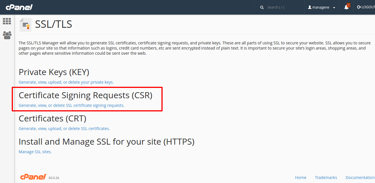 3. ไปที่ Certificate Signing Requests (CSR) เพื่อทำการสรา้ง CSR