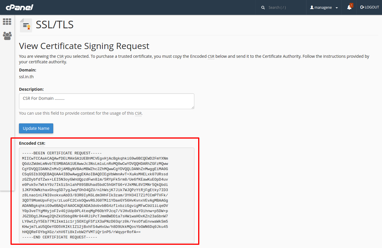 5. เมื่อกดปุ่ม Generate แล้ว จะได้รับ Code CSR ขึ้นมา