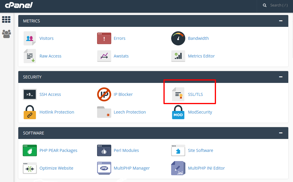 2. ไปที่หมวด Security หัวข้อ SSL/TLS Manager