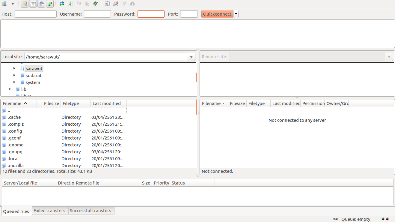 1. ทำการเปิดโปรแกรม FileZilla ขึ้นมา