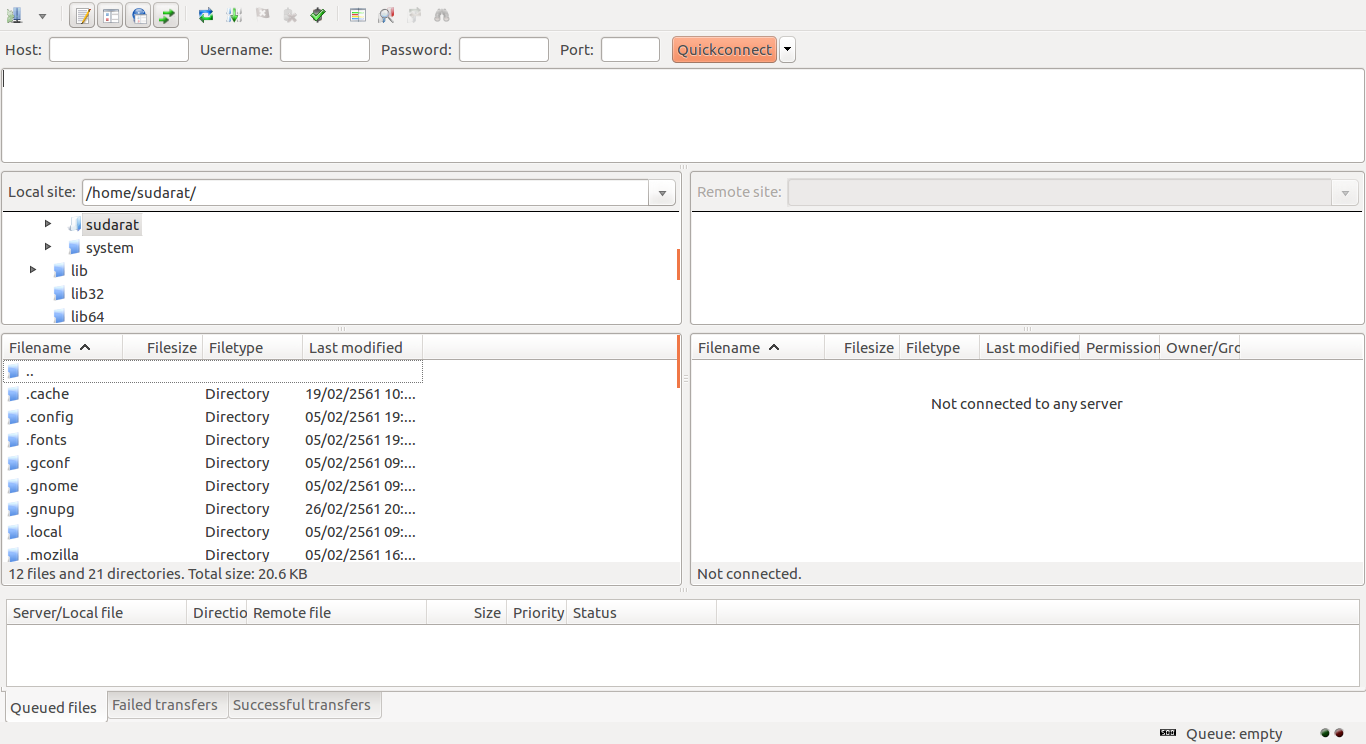 1. ทำการเปิดโปรแกรม FileZilla ขึ้นมา