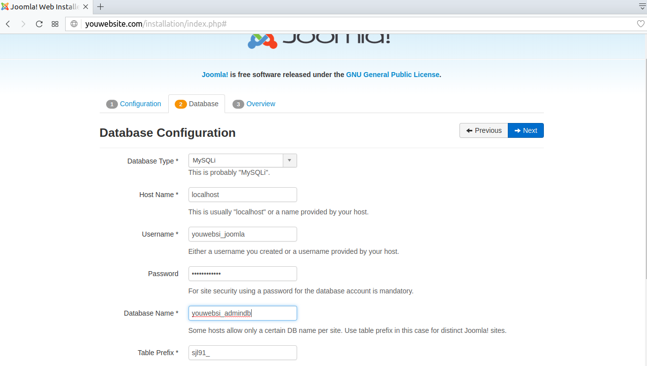 5. เรียกเวบไซต์ของคุณ http://youwebsite.com/installation/index.php เพื่อทำขั้นตอนการ Installation Joomla