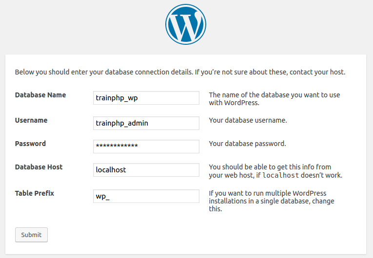 Database Name: trainphp_wp