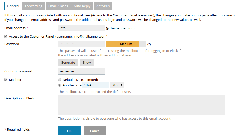 Mailbox: กำหนดขนาดพื้นที่ความจุของอีเมล์