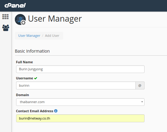 การสร้าง Web User นี้ จะเป็นการสร้าง Directory ของแต่ละ User ขึ้นในพื้นที่ของท่าน เช่น domain.com/~webuse