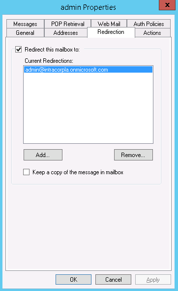 หากต้องการสร้างอีเมลในรูปแบบ Forwarding (Redirection) และไม่ให้เก็บข้อมูลอีเมลต้นฉบับไว้สามารถทำได้ตามวิธีด้านล่าง