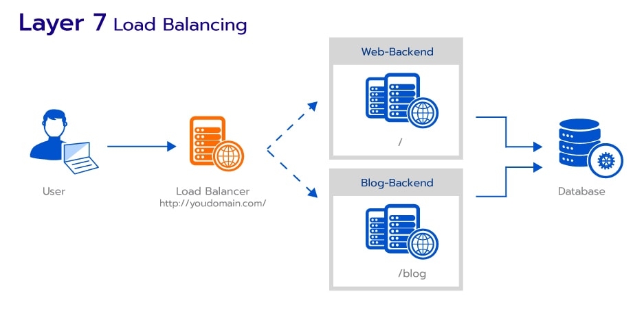 Load Balancer Layer 7 การทำงานในระดับ Application และสามารถใช้ข้อมูล Application เพิ่มเติมนี้เพื่อทำการตัดสินใจในการทำ Load Balancer ที่ซับซ้อนและมีข้อมูลมากขึ้น ด้วยโปรโตคอลเช่น HTTP, HTTPS โดย Load Balancer Layer 7 สามารถระบุ Session Client ตามคุกกี้และใช้ข้อมูลนี้เพื่อส่งคำขอ Client ทั้งหมดไปยัง Server เดียวกัน